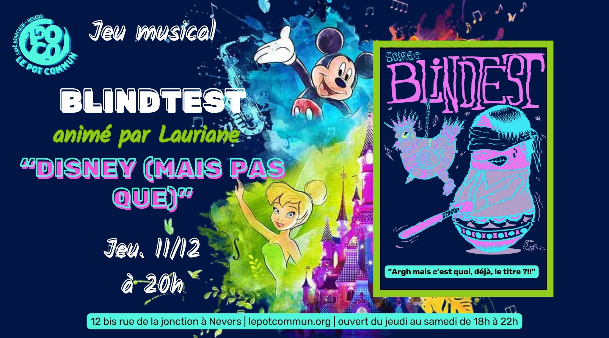 Alors cet Ă©vĂ©nement est fait pour TOI ! Lauriane, notre fĂ©e mĂ©lomane, nous transporte pour une soirĂ©e blindtest magique au Poco, placĂ©e sous le signe de l’enchantement « Disney, mais pas que » !