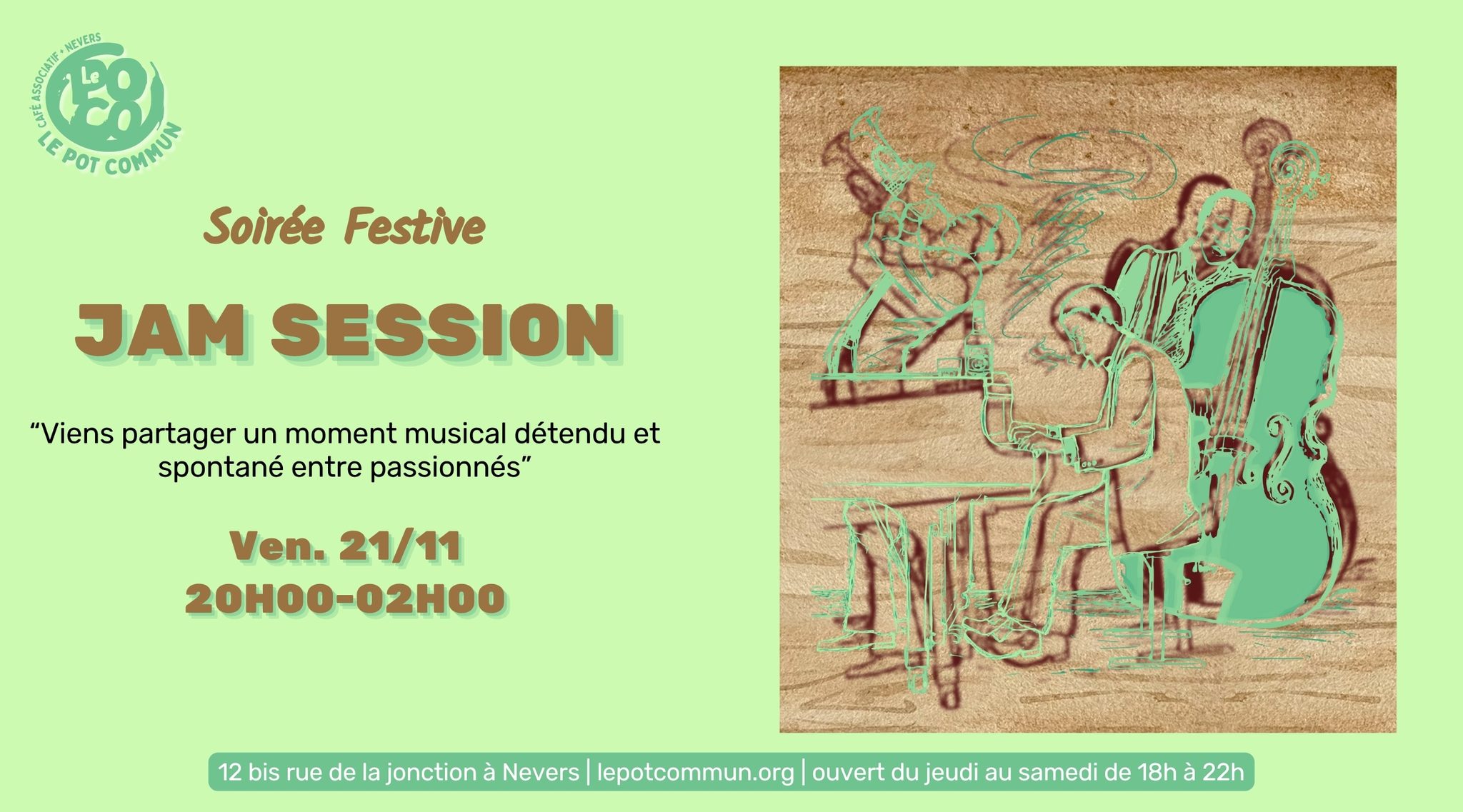Plonge dans l’univers magique de l’improvisation musicale lors d’une « jam session »100% conviviale ! Que tu sois musicien(ne), passionné(e) ou simplement amateur(trice) de bonne musique, cette soirée est faite pour toi.